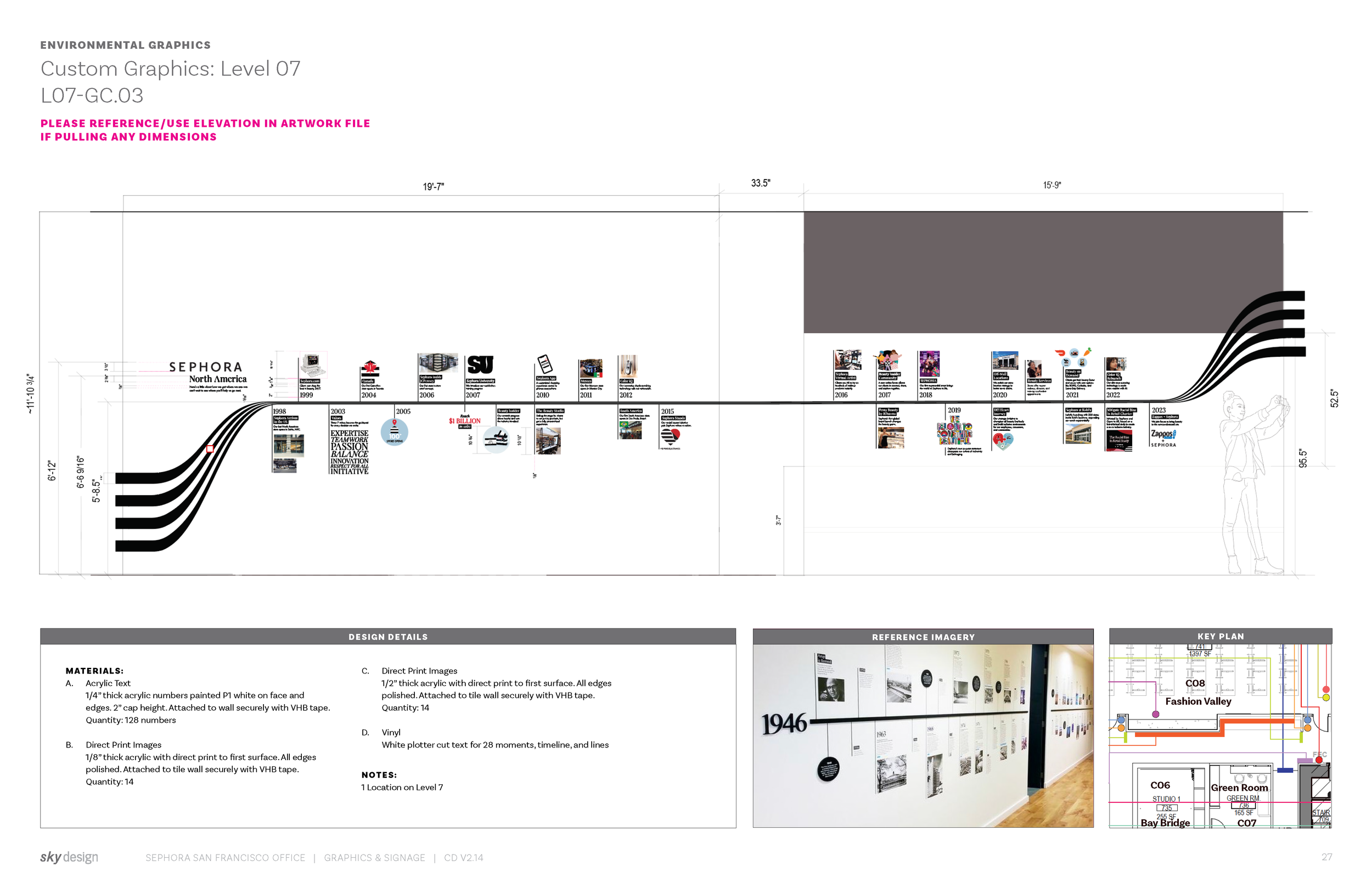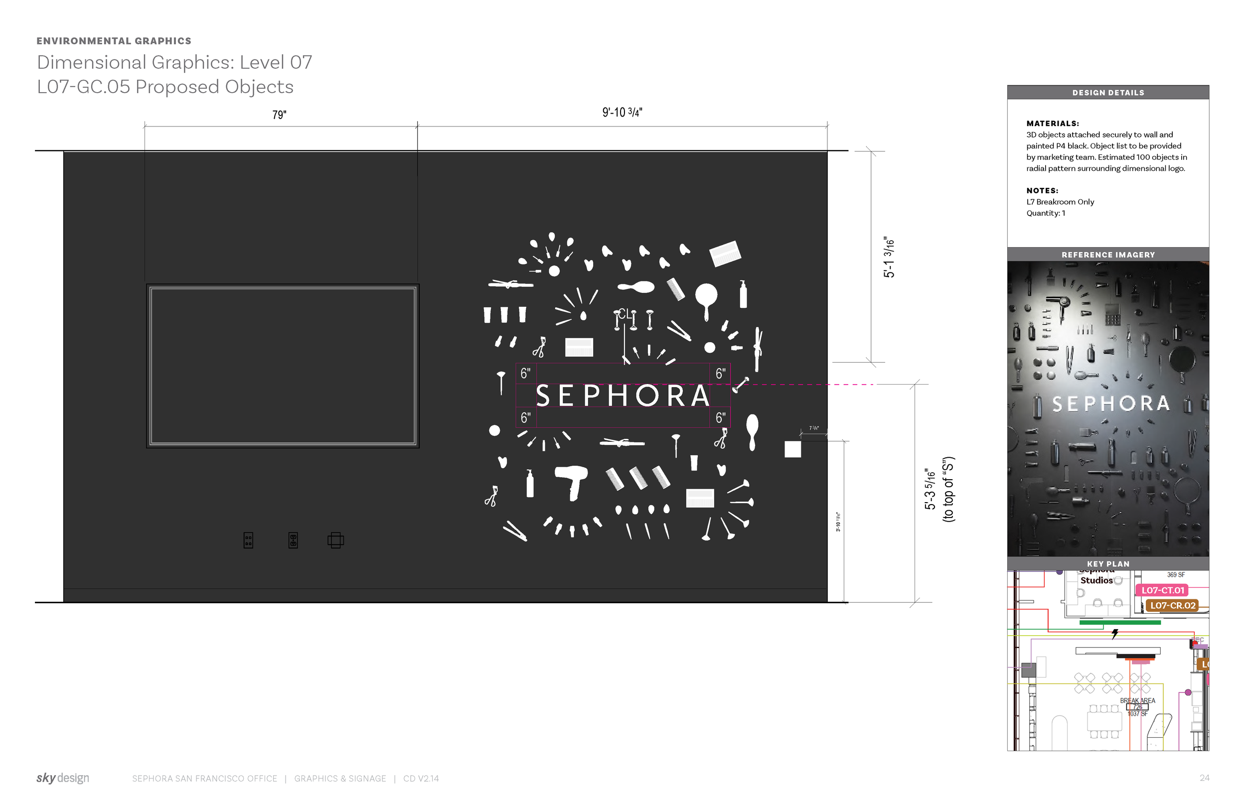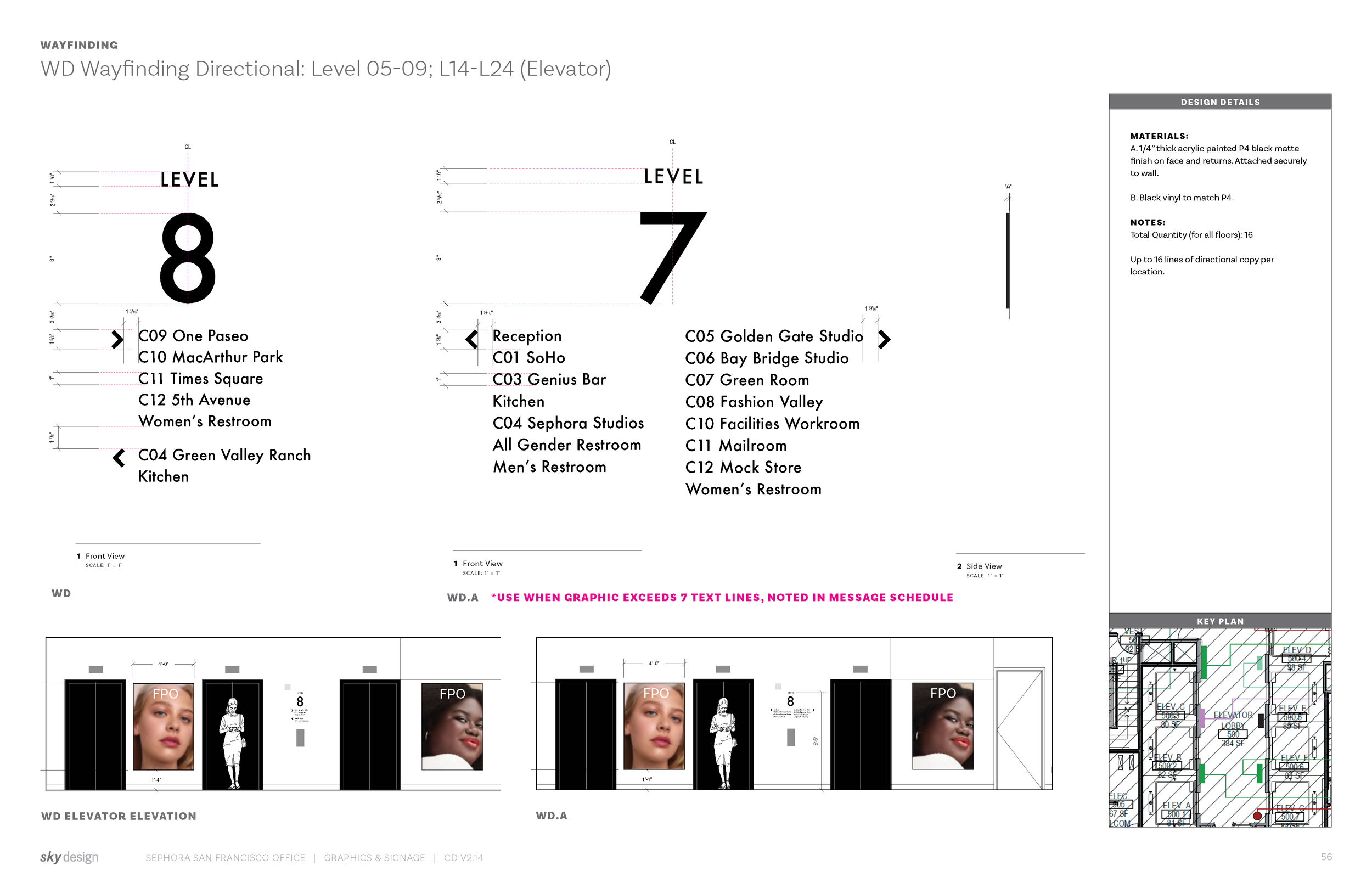 At my current firm ASD | SKY I had the opportunity to work with Sephora as they moved their headquarters into a new building. This included wayfinding, a variety of environmental graphics, code signage, and more. The project was about 9 months and I coordinated and designed not only graphics, but organized and tracked over 1,300 signage locations.